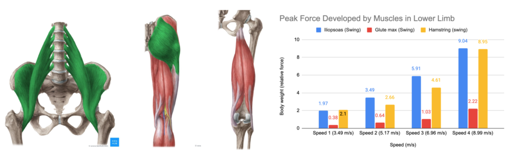 Furthermore, you can see the high demands of hip flexor and hamstring muscles as running speed increases. It is no surprise then that hip flexor and hamstring injuries tend to be the most common amongst high speed athletes (Danielsson et al., 2020)