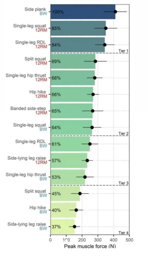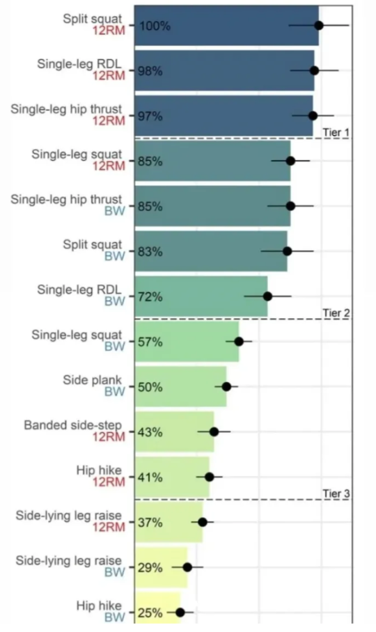 Glute medius EMG activation with various exercises (Collings et al., 2023)